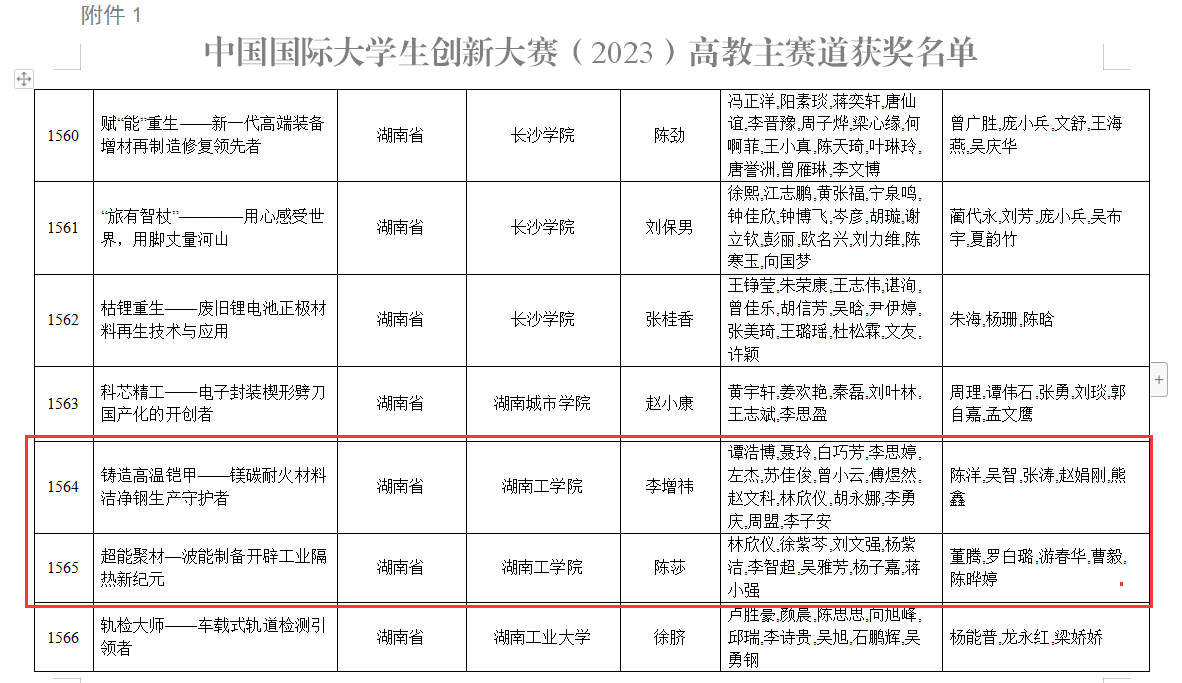 近期,教育部正式公布了中国国际大学生创新大赛(2023)获奖名单,beat365官网《超能聚材—铝盐废渣制备节能建材技术领航者》和《铸造高温铠甲——镁碳耐火材料洁净钢生产守护者》项目均荣获国赛铜奖,值得一提的是,这两个项目均为首次参赛便斩获殊荣。同时,在湖南省教育厅发布的第九届湖南省“互联网+”大学生创新创业大赛获奖通报中,beat365官网亦取得了显著成绩,荣获省赛一等奖1项、二等奖2项、三等奖6项,总成绩在湖南省同类高校中名列前茅。