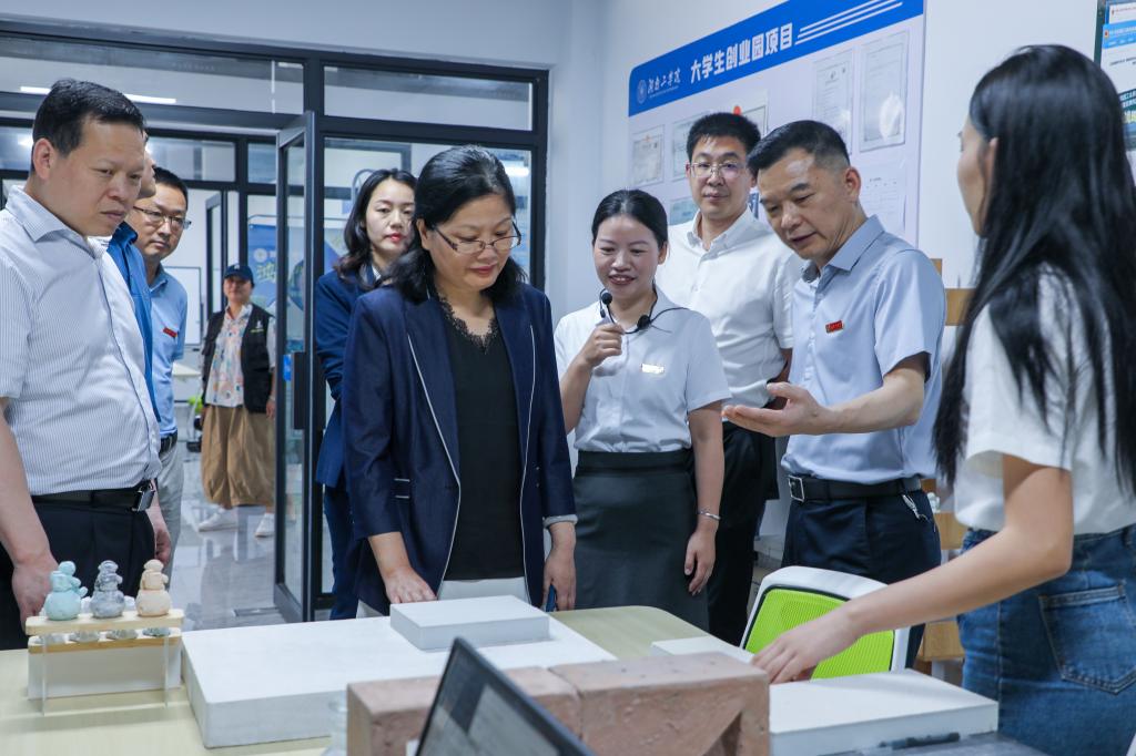 5月22日上午,省人社厅党组成员、副厅长焦华芳一行来beat365官网大学生创业园调研指导工作,校党委书记曹执令、党委副书记何建雄等陪同考察。