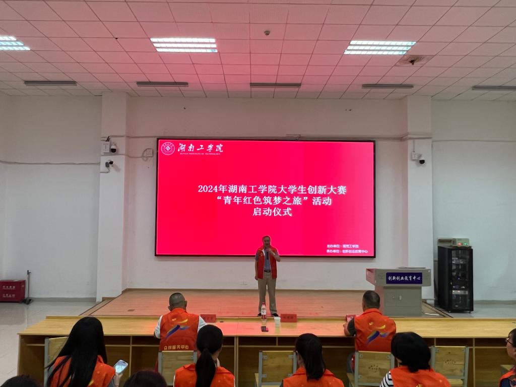 在启动仪式第一阶段结束后,校党委副书记何建雄发表了重要讲话。何书记表示“青年红色筑梦之旅”活动自2017年启动,旨在推动习近平新时代中国特色社会主义思想入眼入耳、入脑入心,鼓励广大青年学生扎根中国大地,用创新实践服务国家、服务人民,将个人奋斗融入强国建设、民族复兴伟业。何书记激励同学们要踊跃投身于“青年红色筑梦之旅”活动,传承红色基因,以项目组团形式,深入革命老区、偏远山区和城乡社区,将创新理念与实践紧密相融,用创新实践服务国家、服务人民,充分展现出湖工学子的风采与担当。