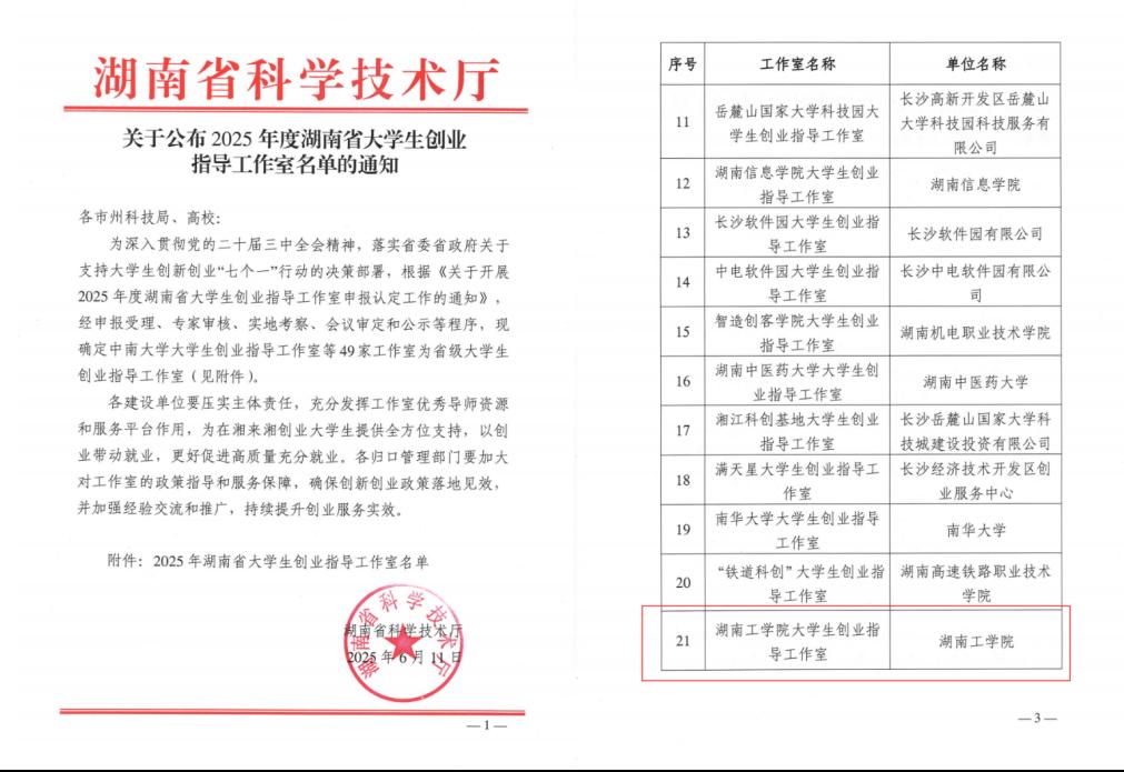 近日,湖南省科学技术厅公布了2025年度湖南省大学生创业指导工作室名单,beat365官网申报的“beat365正版唯一官网必一大学生创业指导工作室”成功入选,这是beat365官网贯彻落实省委省政府“七个一”行动部署中取得的一项重要成绩。