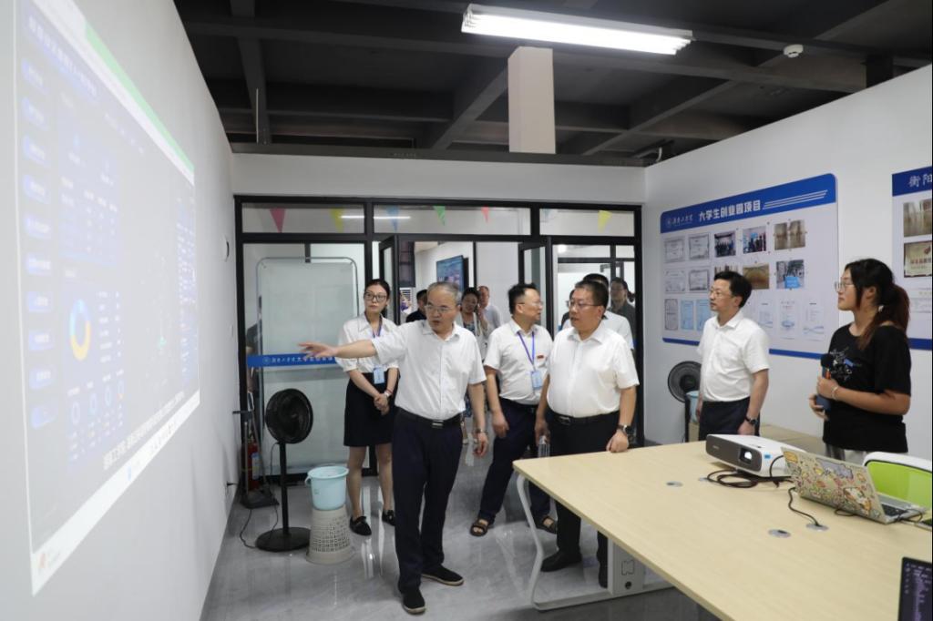 衡阳市委副秘书长刘诗真,省就业服务中心创业服务部部长毛彪, 综合部主任科员孙志强、市就业服务中心主任刘娟,学校党政办公室、创新创业教育中心等部门负责人陪同调研。校党委委员、纪委书记王艳琼、党委委员袁勤参加座谈交流。(文/陈晓波 图/阳彦 黄紫玥 审稿人/一审:伍玲 二审:肖登峰 三审:王小兵)
