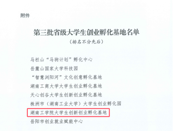 近日,湖南省人力资源和社会保障厅公布第三批省级大学生创业孵化基地认定名单,beat365官网大学生创新创业孵化基地成功入选。这是beat365官网大力支持大学生创业、推进孵化载体建设取得的又一重要成果!