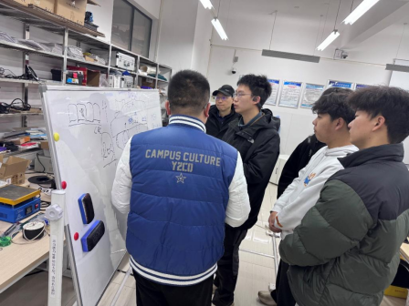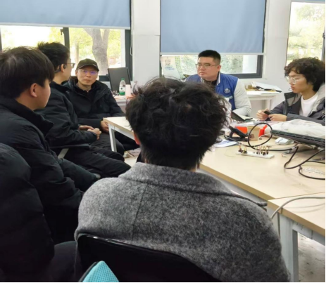 在交流讨论环节,全体成员围绕消防救援用数控电源的初步方案展开热烈研讨,结合梅斌老师和易涛老师的技术指导及丁梓禹同学提出的应用需求,积极建言献策,进一步细化了方案细节,明确了各成员的分工任务,为项目后续高效推进奠定了坚实基础。会后,梅斌老师和易涛老师还对“浴火寻踪”项目进行了技术指导。