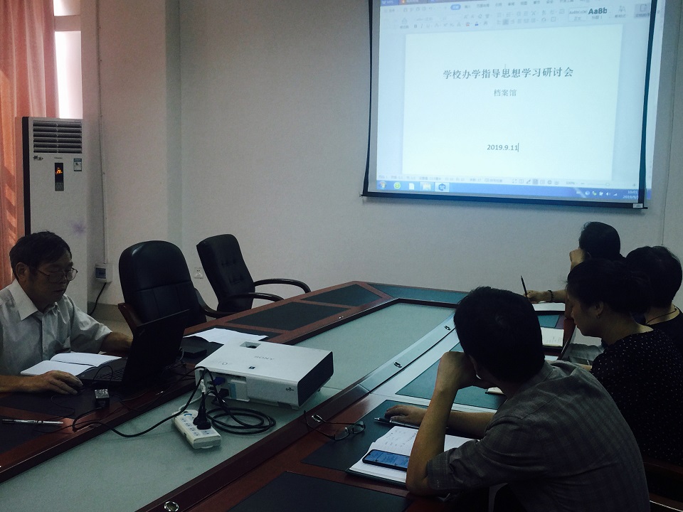 9月11日,档案馆在档案馆会议室召开了学校办学指导思想学习研讨会,馆长刘金春主持会议,档案馆全体成员参会。