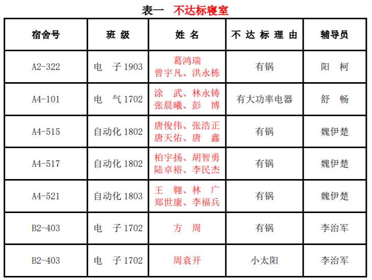 2021年上半年文明宿舍建设活动第七周,我院“文明宿舍创建活动”工作组本着“公平、公正、公开”的原则,对我院全部宿舍进行了彻底检查。现将检查结果公布如下: