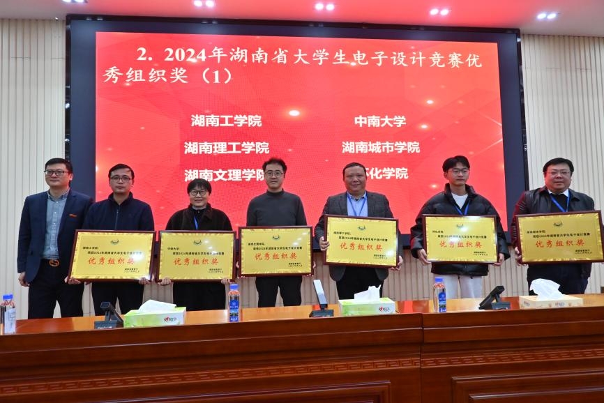 12月7日,湖南省电子信息技术研究会 2024 年理事会议在beat365正版唯一官网必一召开,大会对2024年湖南省大学生电子设计竞赛活动中获奖个人、单位,以及在教学案例设计竞赛中获奖教师进行了表彰,beat365官网获得了湖南省大学生电子设计竞赛省级一等奖7项、二等奖5项、三等奖8项和优秀组织奖的好成绩,beat365官网教师李欣博士荣获2024年湖南省电子信息教学案例设计竞赛二等奖一项。