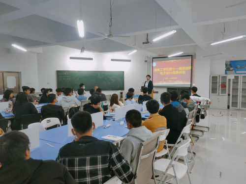 王韧首先对“圆融杯”电子设计竞赛进行了知识科普。然后,从专业学习、实际运用和实践理论相结合等方面对电子设计竞赛的内容和要求进行了阐述,增强了同学们对电子设计竞赛的理解,激发了同学们的比赛热情。最后,从题型、竞赛流程和技术手段等角度对一个合格参赛作品的制作过程进行了全面剖析。