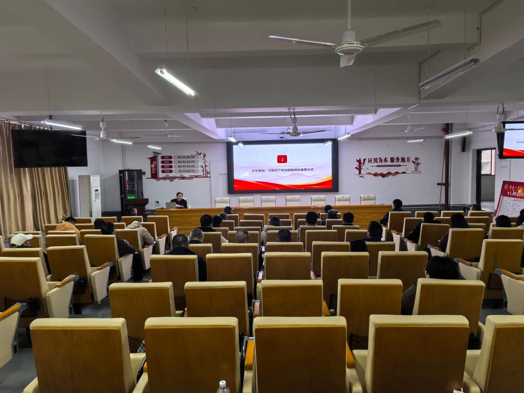 12月23日下午,校党委委员、副校长黄红卫以“夯实基础 全面发力 奋力谱写中国式现代化新篇章——学习贯彻党的二十届四中全会精神”为主题,为其分管的电气与信息工程学院、资产管理处、后勤基建处的全体党员讲授专题党课。