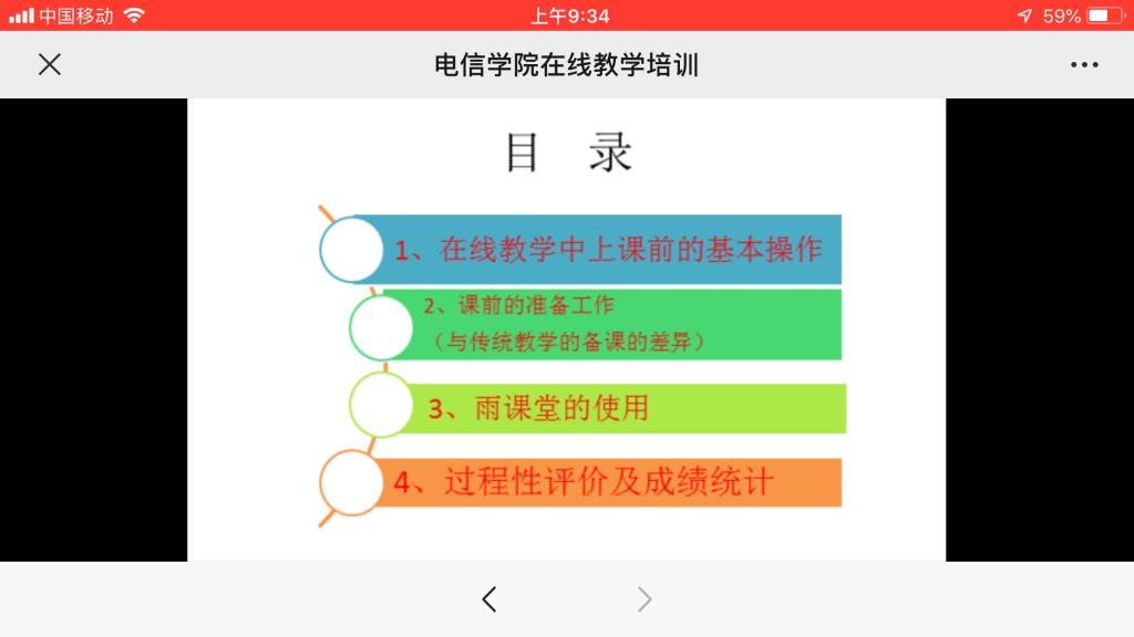 受疫情影响,开学日期仍没有确定,为了不影响教学进4月9日上午,电信学院组织了一次线上公开课的培训,由贾雅琼博士主讲公开课,要求电信学院全体教职工成员参会。贾雅琼老师的主要是给大家介绍了如何让利用雨课堂进行教学,与学生互动,实时掌握学生的知识掌握情况,介绍了雨课堂的上课签到模式,随机提问等模式,课堂检测模式,老师们的参与度积极度都很高,本次公开课得到了全院师生的支持和响应。