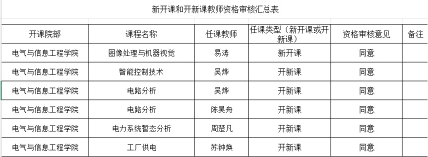 电气与信息工程学院2026年春季学期新开课和开新课教师任教资格公示