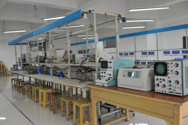 实训室2004年由长沙九天实业有限公司捐赠实验设备并提供技术支持,学院提供基础条件和人力资源,双方共建,面向全校的SMT实践教学和基础研究。主要仪器设备有:电子产品生产流水线、波峰焊机、回流焊机、零件脚切割机、手动丝印台、示波器、函数信号发生器、IC测试仪热风枪能够完成的实训课程有:《电子产品设计实训》、《电子实训》等。该实训室能够完成电气、信息类实训课教学大纲要求的实训项目,主要训练学生的锡焊焊接、电子产品制作、电子产品组装、生产控制等实践能力。