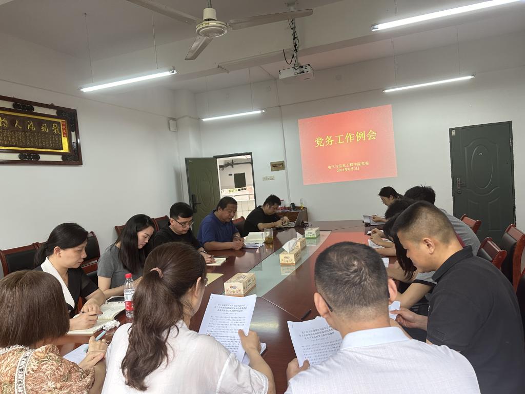 6月3日,电气与信息工程学院在电信楼3309围绕近期工作开展了本年度党务工作例会,学院全体党委委员、三办主任、教工支部书记及支部委员、学生支部书记参加,会议由院党委书记俞斌主持。