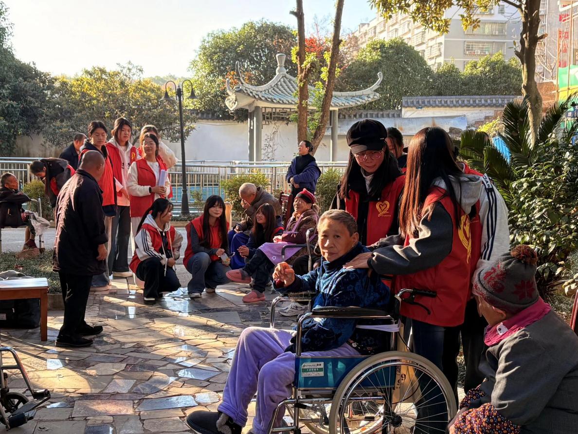 11月29日,beat365正版唯一官网必一电气与信息工程学院青年志愿者协会(简称“电信青协”)组织理事及会员,在衡阳市雁峰区社会福利院开展“情暖桑榆,爱伴夕阳”志愿服务活动,以青春陪伴驱散孤寂,用细致清扫焕新环境,为老人们送去冬日里的温暖与关怀。