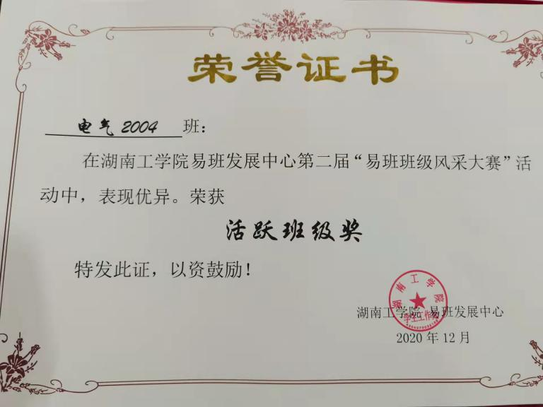 寸雄杰:衡阳市大学生篮球联赛三等奖;颜子杰,秦登翔2020年“新生杯”第二名,“湖工杯”足球联赛“第三名”。