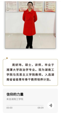 为迎接建党百年,马克思主义学院教师深挖湖南党史素材,组织开展“一颗红心永向党 红色故事我来讲”党史诵读宣讲活动,以在线朗读的形式,用声音带领师生重温峥嵘岁月,缅怀革命先烈,接受革命教育,以史树德、以史增智、以史践行,为学校即将召开的第三次党代会献礼,为全面开启的“十四五”新篇章贡献力量。