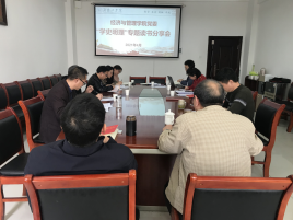 4月20日,经管学院在经管楼315会议室召开党委中心组第三次集中学习暨“学史明理”专题读书分享会,党委中心组全体成员、各党支部书记参加会议。会议由院党委书记张忠贤主持。