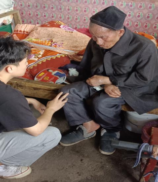 在留守老人家中,学生党员伍振与老人共讲党史、红军的故事,回顾党的峥嵘岁月与艰苦历程。伍振谈到,对比老一辈过去的生活,我们现在遇到的困难都不算什么,只有加倍努力方不辜负前辈们抛头颅、洒热血为我们换取的太平盛世。