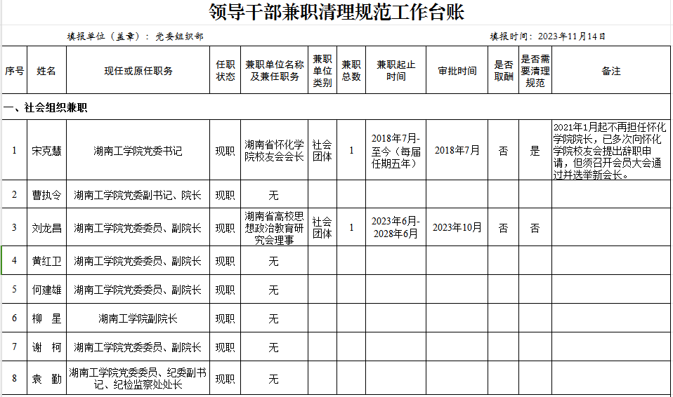 学校领导班子成员社会兼职情况公示