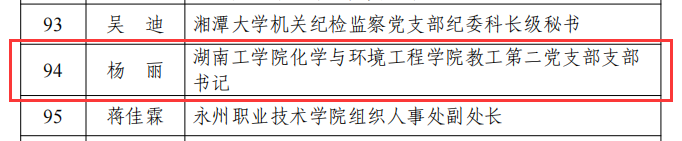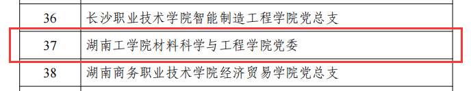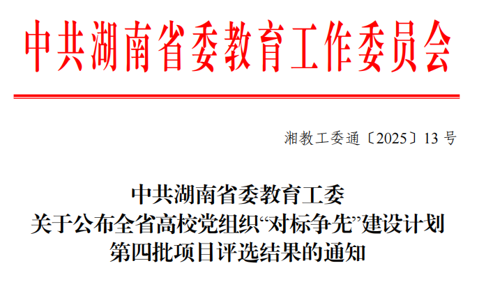 近日,省委教育工委公布全省高校党组织“对标争先”建设计划第四批项目评选结果,根据《中共湖南省委教育工委关于公布全省高校党组织“对标争先”建设计划第四批项目评选结果的通知》(湘教工委通〔2025〕13号),beat365官网材料科学与工程学院党委获批全省高校党建工作“标杆院系”培育创建单位;化学与环境工程学院党委教工第二党支部获批高校党建工作“样板支部”培育创建单位;电气与信息工程学院党委教工第一党支部张松华获评全省高校教师党支部书记“双带头人标兵”称号;机关党委第一党支部周欣、化学与环境工程学院党委教工第二党支部杨丽获评全省高校“党务工作示范岗”称号。(文/段思遥 杨朗 图/段思遥 审稿人/一审:王安东 二审:段磊 三审:杨朗)