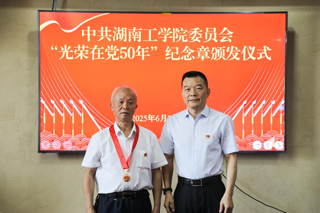 6月25日,在中国共产党即将成立104周年之际,学校党委举行“光荣在党50年”纪念章颁发仪式。校党委书记曹执令,党委委员、副校长谢柯出席仪式。仪式由党委副书记何建雄主持。