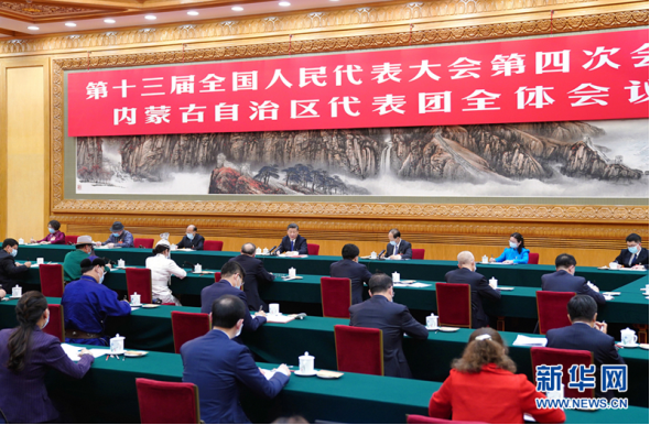 3月5日,中共中央总书记、国家主席、中央军委主席习近平参加十三届全国人大四次会议内蒙古代表团的审议。(新华社记者 谢环驰/摄)