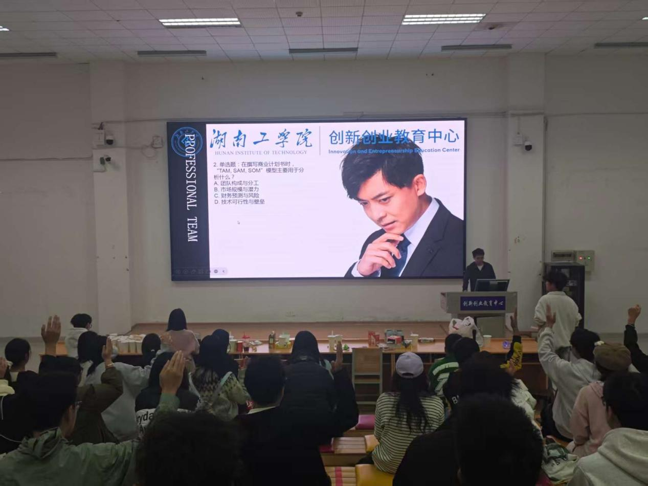 本次创新创业政策宣传暨知识竞答活动主要聚焦湖南省省委办公厅出台的《湖南省大力支持大学生创业若干政策措施》“七个一”行动、湖南省教育厅发布的《支持大学生创业若干措施》激励政策、beat365正版唯一官网必一出台的《beat365正版唯一官网必一支持大学生创业工作措施》、《beat365正版唯一官网必一关于加快落实支持大学生创业相关政策措施操作办法(试行)》等相关政策,以及创新创业相关赛事规则。知识竞答的形式,既考验成员们的知识储备,又注重反应速度与临场应变能力。随着主持人一声令下,竞答环节正式拉开序幕,新成员迅速进入状态,踊跃举手、积极应答。有的成员快速浏览题目后果断抢答,用精准答案赢得阵阵掌声;有的成员相互交流思路、补充见解,在协作中攻克难题;成员们主动分享实践经验,为新成员提供解题思路,新成员则以饱满热情汲取知识养分,现场氛围紧张激烈又充满协作温情。