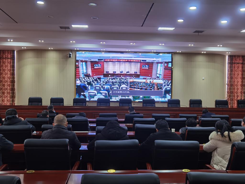 2月14日下午,省教育厅组织召开了全省教育系统春季开学疫情防控工作视频调度会。省教育厅党组成员、副厅长、省教育厅疫情防控工作领导小组常务副组长左清出席并讲话,会议由省教育厅二级巡视员雷桂平主持。校领导曹执令、刘升学、黄红卫、袁勤,相关部门主要负责人,各二级学院党委书记、院长和疫情防控办全体成员在beat365官网分会场参加会议。