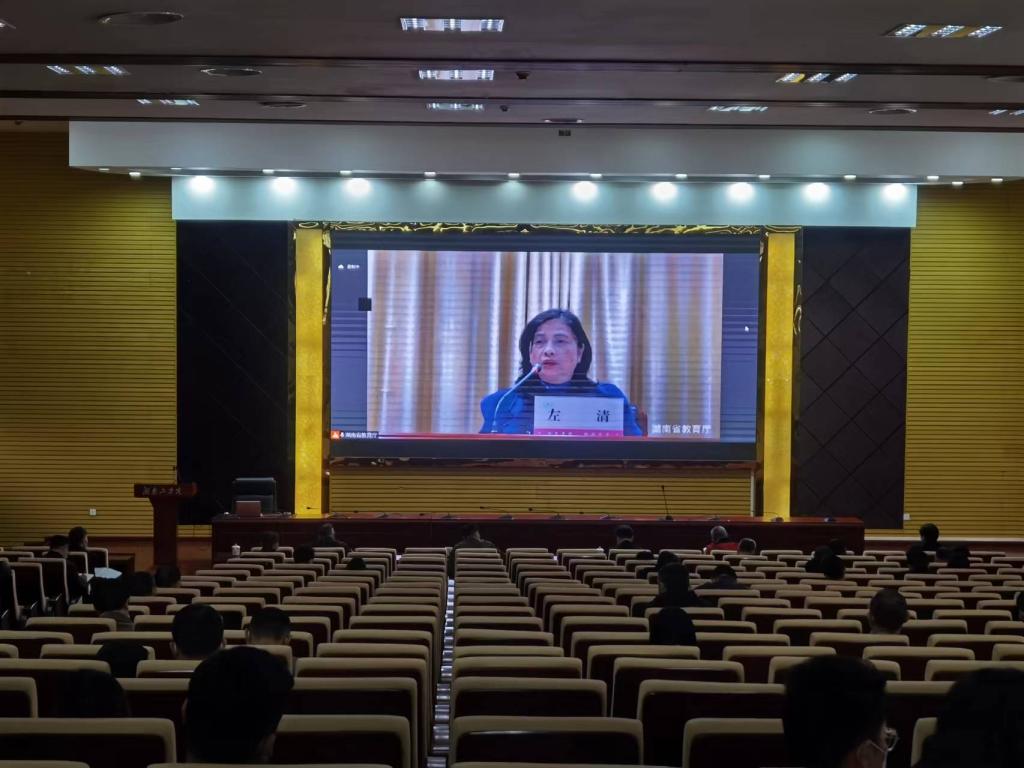 416日上午,省教育厅组织了全省教育系统新冠肺炎疫情防控视频培训,beat365官网500人报告厅设分会场。党委书记宋克慧、校长曹执令,党委副书记张平、副校长刘升学、刘龙昌、张治春、黄红卫,党委委员袁勤,校内各部门(单位)党政正职,各二级学院领导班子成员,全体辅导员、组织员,疫情防控办公室全体成员参加了此次培训。培训由省教育厅党组成员、副厅长左清主持。