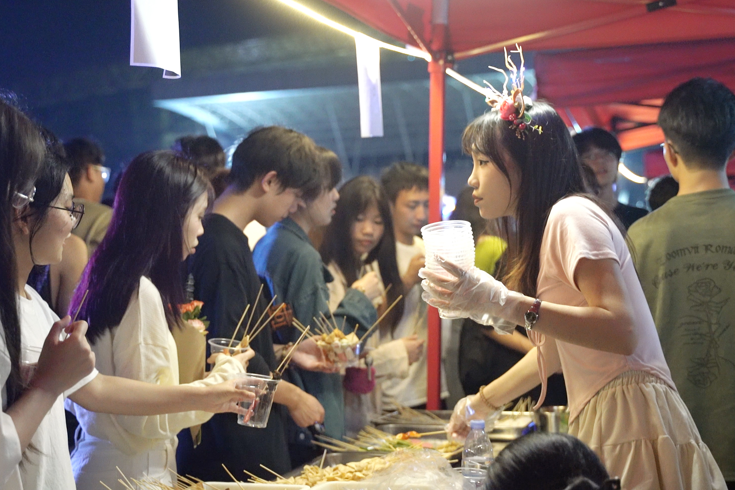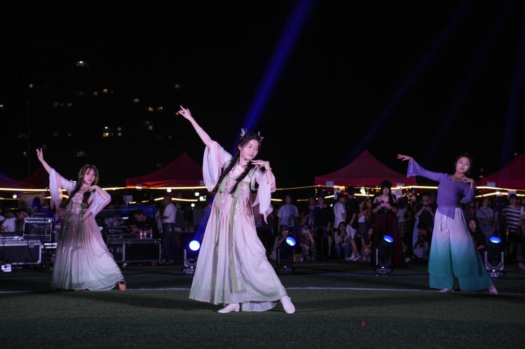 夜幕降临,华灯初上,游园会现场人头攒动,热闹非凡。许多摊位前都排起了长龙,人气爆棚。现场还举行了精彩的社团表演,激情四射的舞蹈串烧、动人心弦的音乐演唱、英姿飒飒的武术表演……将现场气氛推向一个又一个高潮。