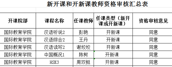 国际教育学院关于开新课教师资格审查意见的公示