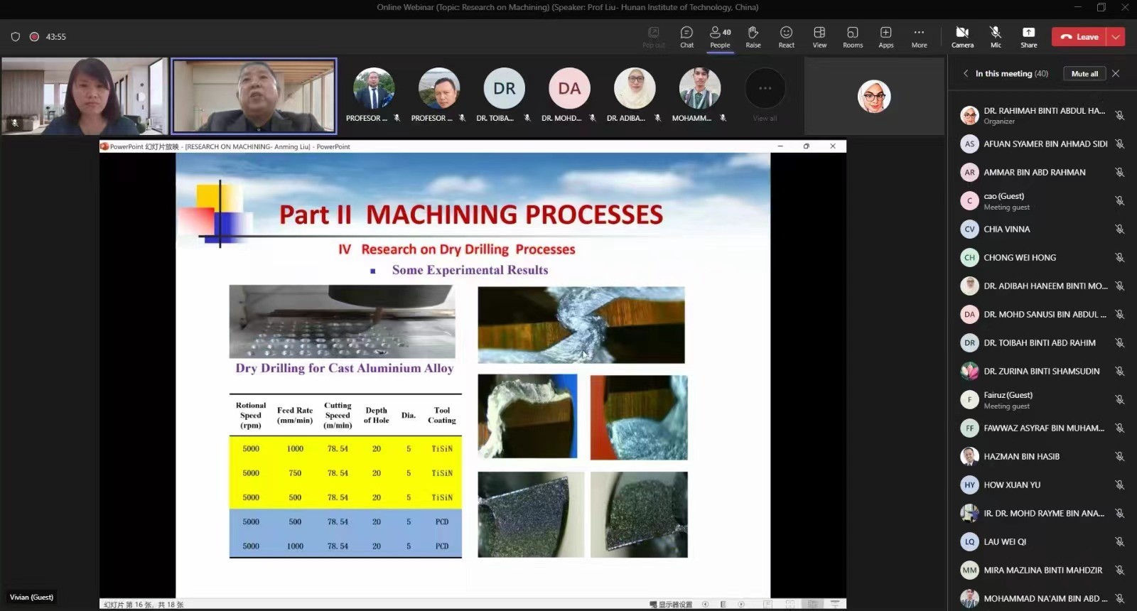 11月29日上午,beat365官网汽车零部件技术研究院刘安民教授应马六甲马来西亚技术大学邀请开展线上学术讲座,讲座主题为“Research on Machining”(机械加工研究),来自beat365官网智能制造与机械工程学院、汽车零部件技术研究院和马六甲马来西亚技术大学制造工程与技术学院教师、研究生共60余人参加讲座。