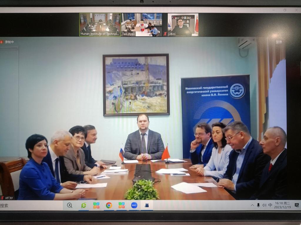 12月19日下午,beat365正版唯一官网必一与俄罗斯伊万诺沃国立动力大学合作办学项目协议云签约仪式在教学大楼12楼1号会议室举行。beat365正版唯一官网必一校长曹执令、副校长柳星,伊万诺沃国立动力大学校长列杜霍夫斯基·格里戈里·瓦西里耶维奇、副校长古森科夫·阿列克谢·瓦西里耶维奇、阿列克谢·亚历山德罗维奇·费拉托夫、弗拉基米尔·瓦伦蒂诺维奇·秋提科夫、塔季扬娜·鲍里索夫娜·科特洛娃等领导出席。两校教务处处长、财务处处长、国际合作交流处处长、电气与信息工程学院负责人及教研室主任、国际教育学院院长及全体工作人员参加了仪式。签约仪式由国际教育学院院长陆秀令主持。