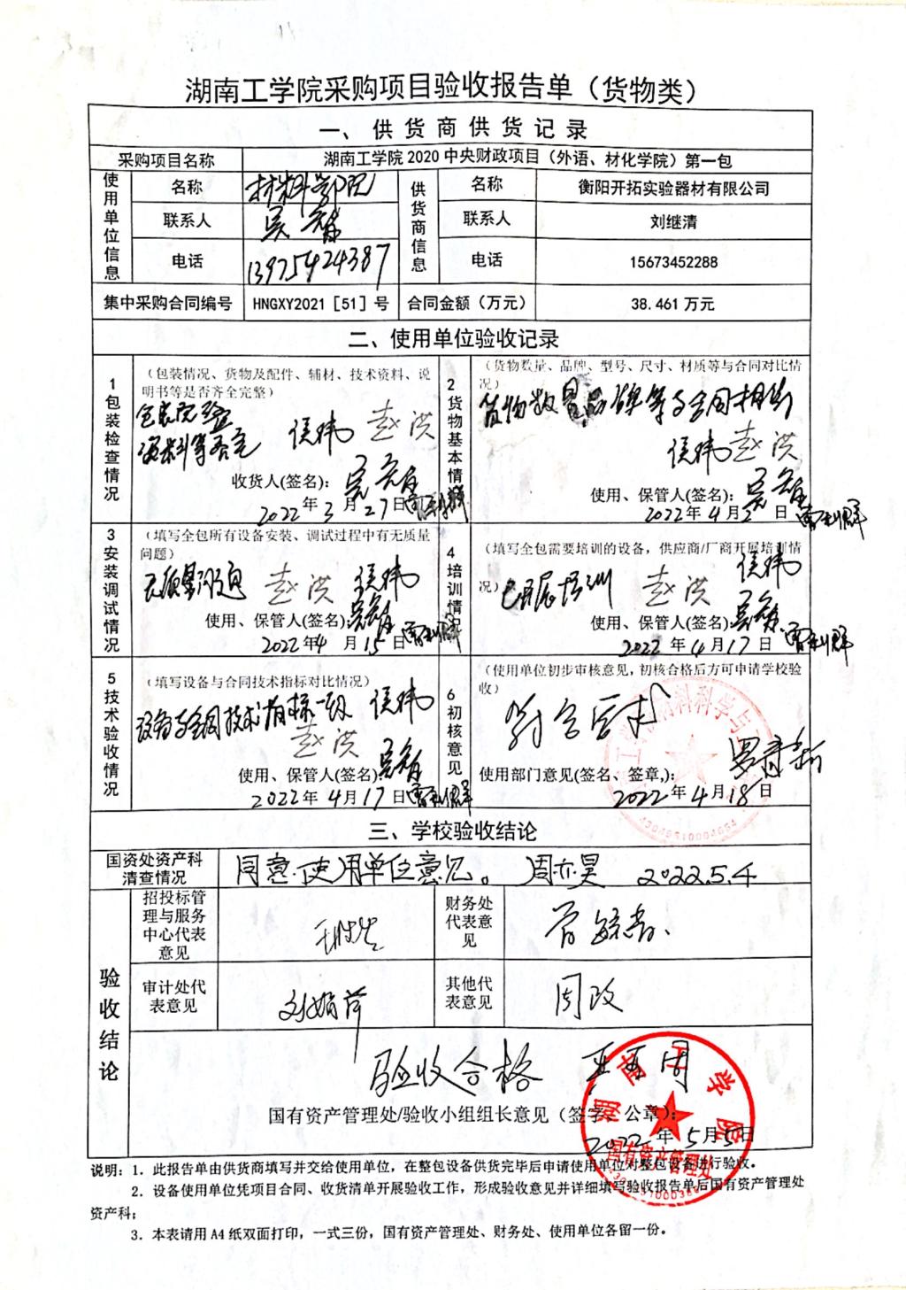 根据国有资产管理处对采购项目的验收安排,2022年4月15日国有资产管理处组织招投标管理与服务中心、审计处、财务处、学科建设与发展规划处以及使用部门代表对供应商的货品进行现场验收。