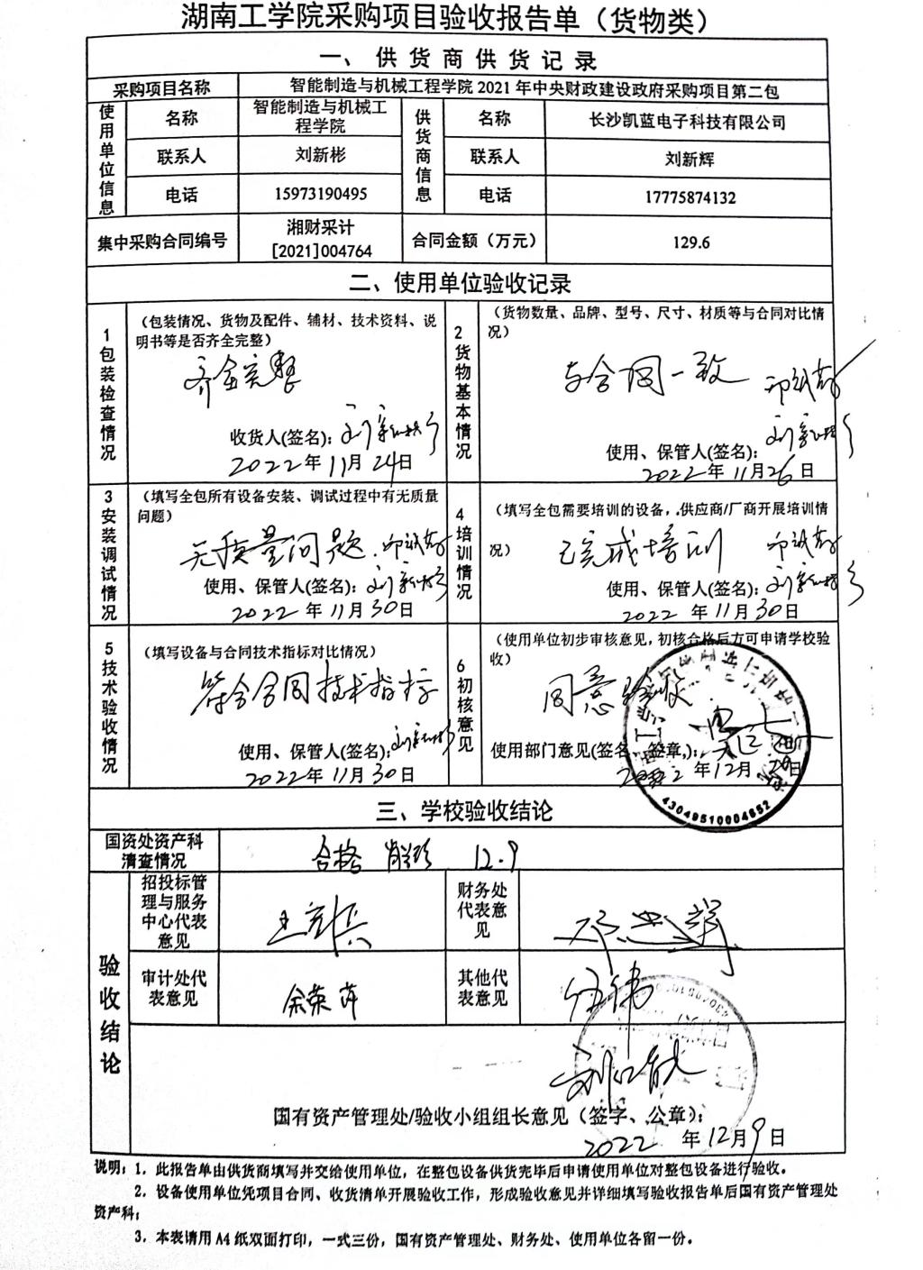 2022年12月关于湘财采计【2021】004764号项目验收情况公告