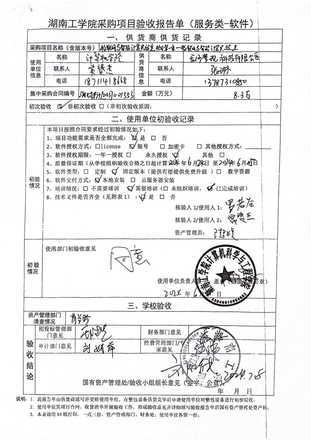 2024年6月关于湘财采计【2023】001353号项目验收情况公告
