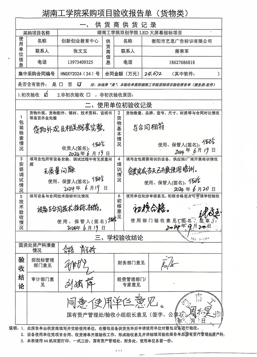 2024年10月关于HNGXY2023【24】号 购字2023【11】号采购项目验收情况公告