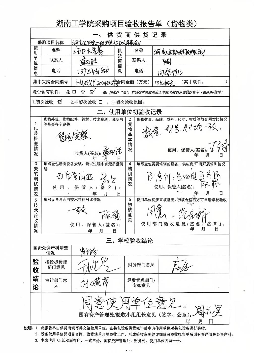 2024年10月关于HNGXY2024【23】号 购字2024【10】号采购项目验收情况公告