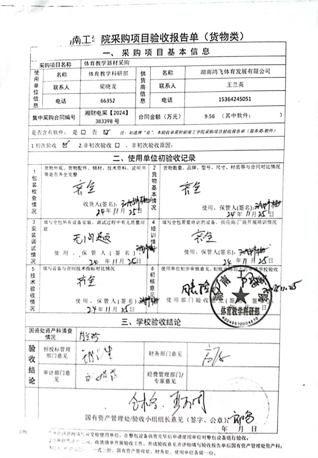 2024年12月关于湘财电采【2024】383398号项目验收情况公告