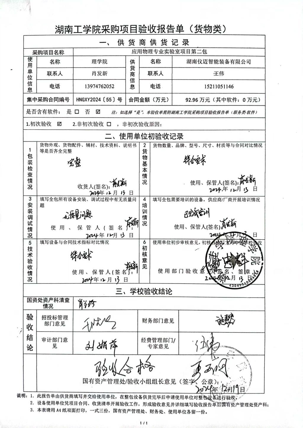 2024年12月关于HNGXY2024【55】号 购字2024【26】号采购项目验收情况公告