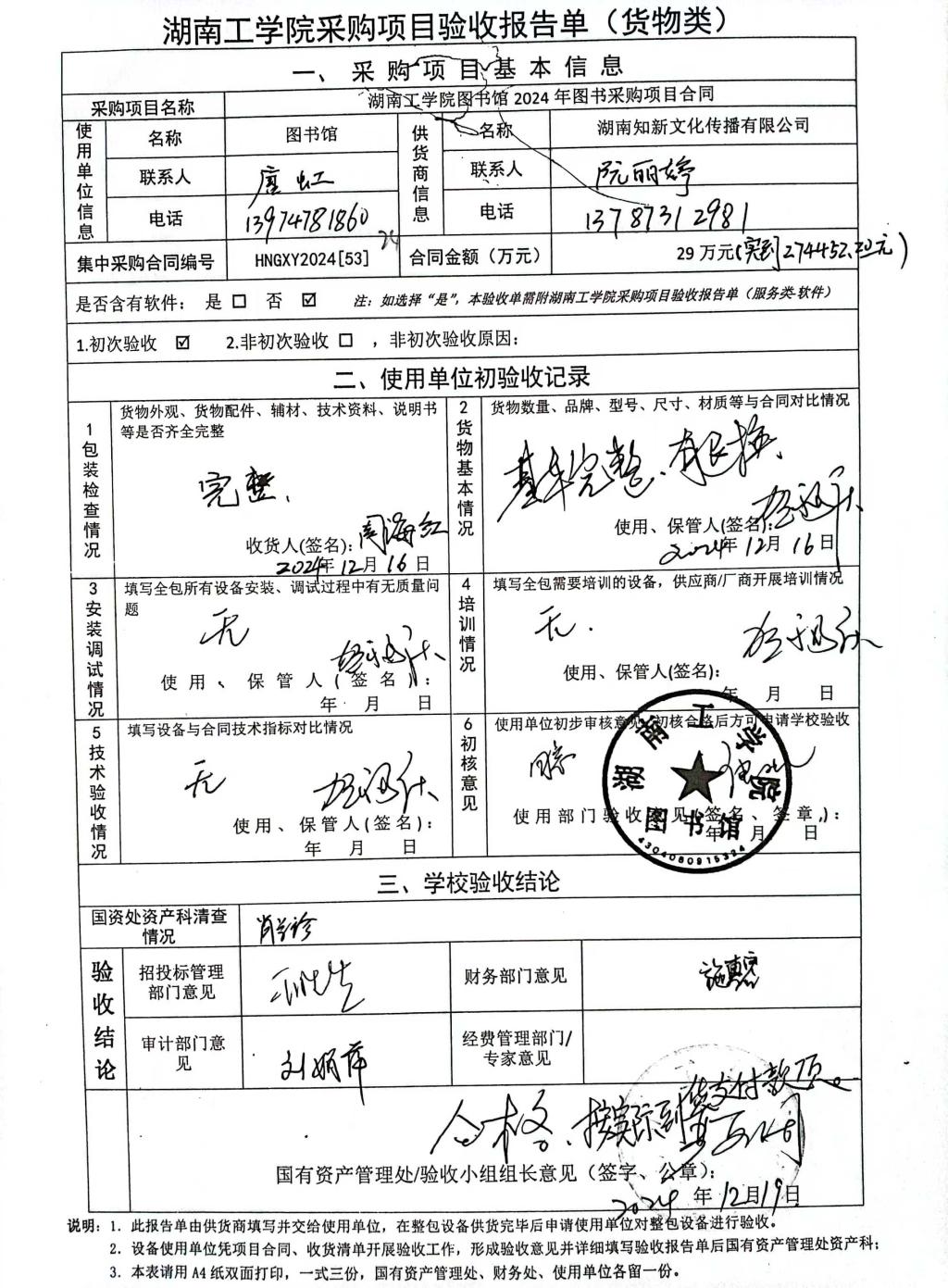 根据国有资产管理处对采购项目的验收安排,2024年12月18日国有资产管理处组织招投标管理与服务中心、审计处、财务处以及使用部门代表对供应商的项目进行现场验收。
