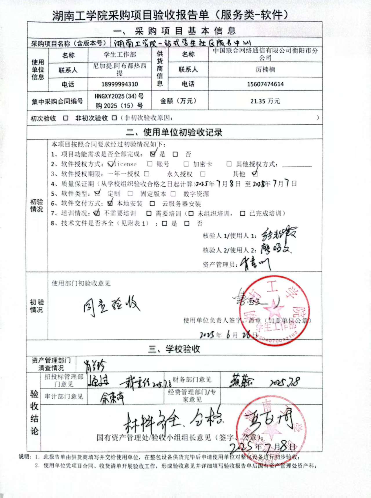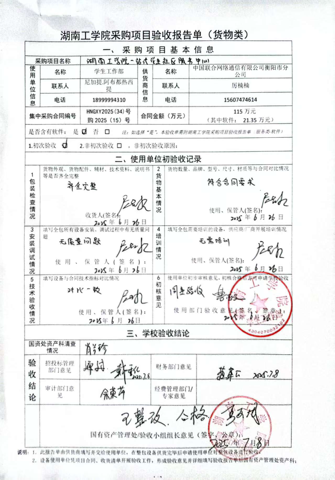 2025年7月关于HNGXY2025【34】号 购字2025【15】号采购项目验收情况公告