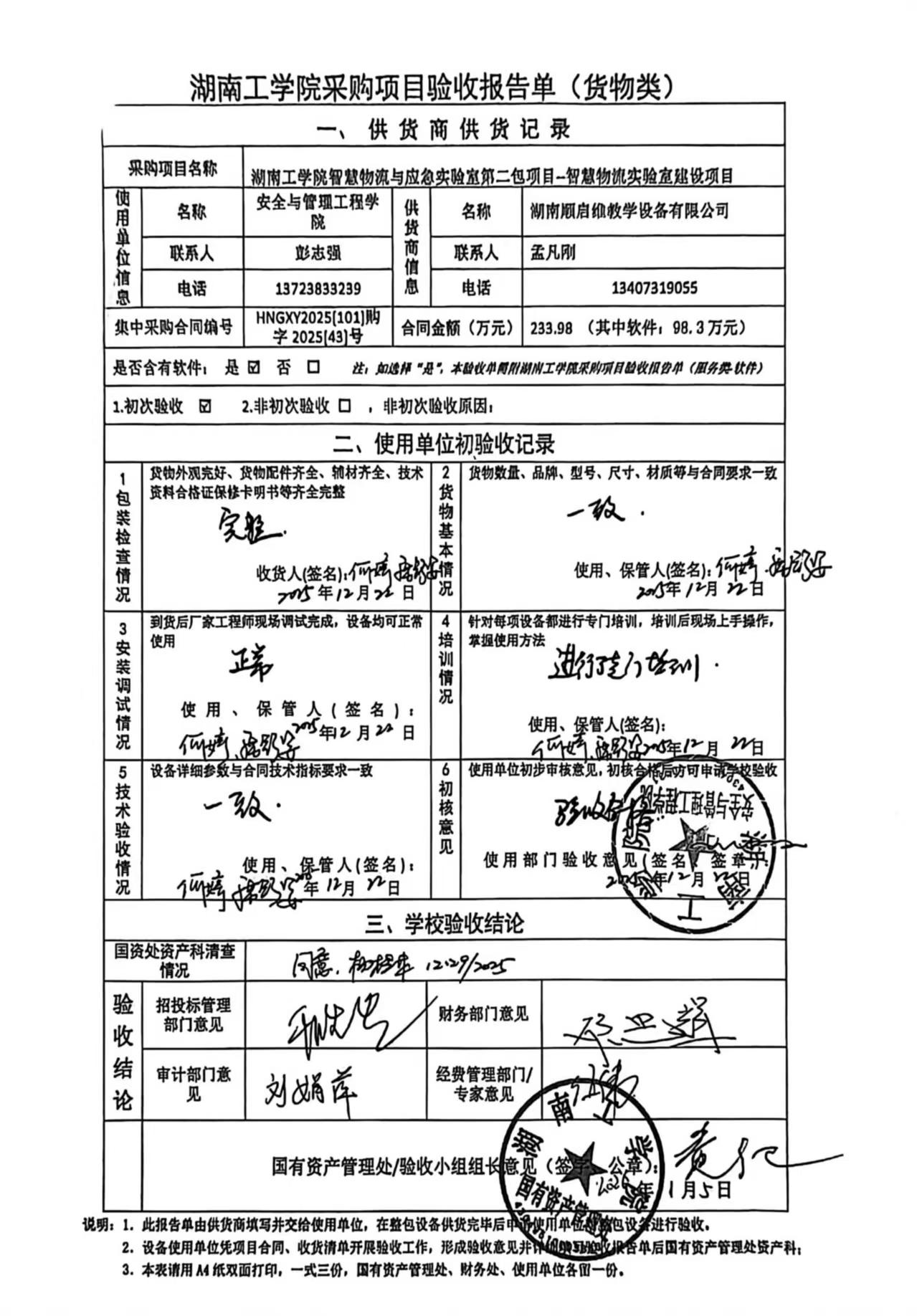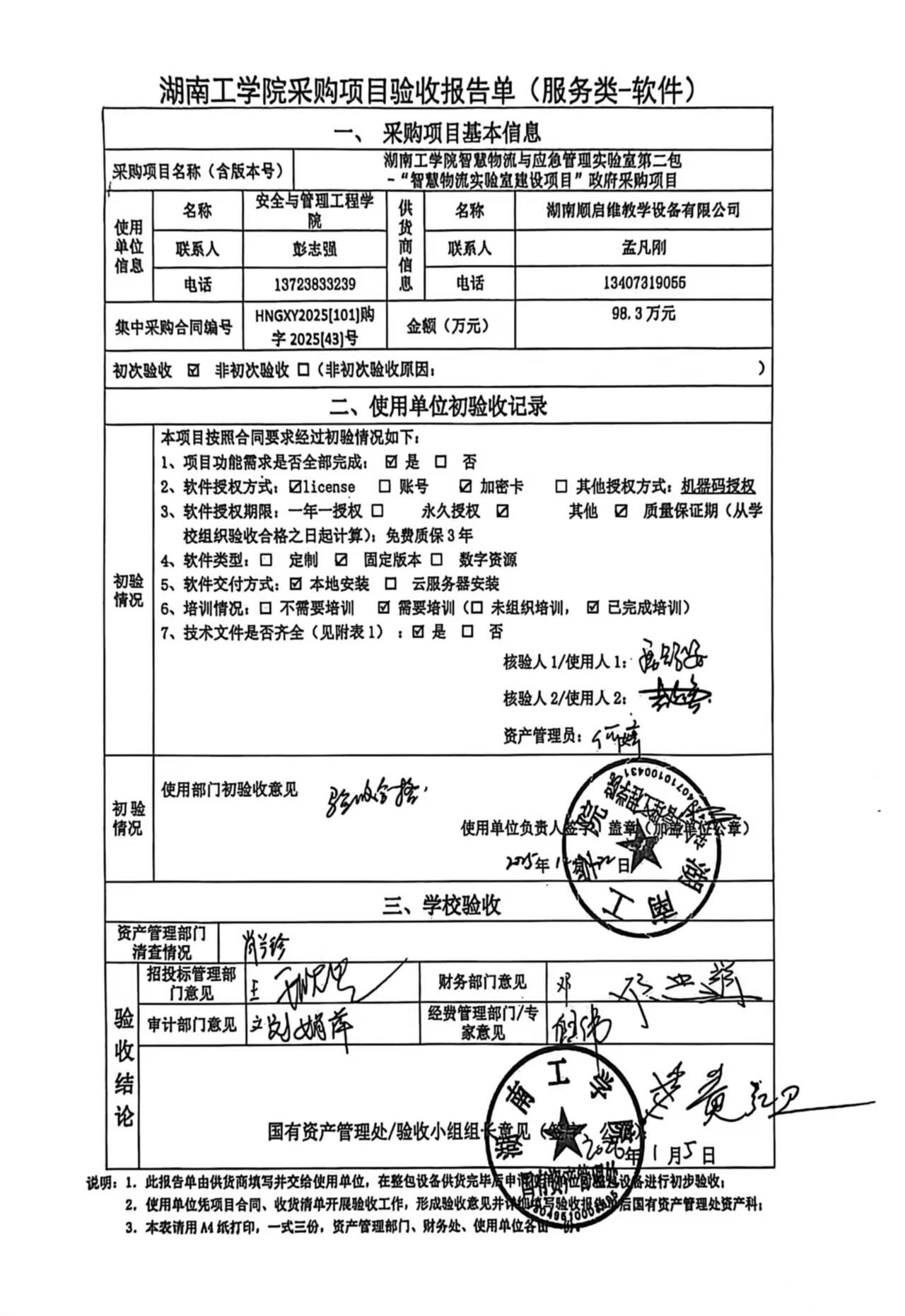 2025年12月关于HNGXY2025【101】号 购字2025【43】号采购项目验收情况公告