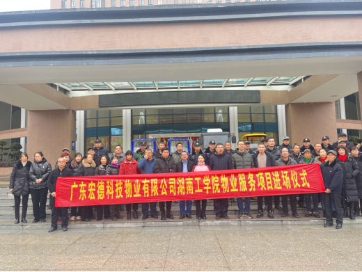 2024年2月3日上午,广东宏德科技物业有限公司(以下称“宏德科技物业”))进驻beat365正版唯一官网必一入场仪式在教学大楼阳光大厅前举行。学校后勤基建处、学生工作部、保卫部、国有资产管理处等部门相关负责人出席,宏德科技物业驻beat365正版唯一官网必一项目部经理及员工代表参加了入场仪式。