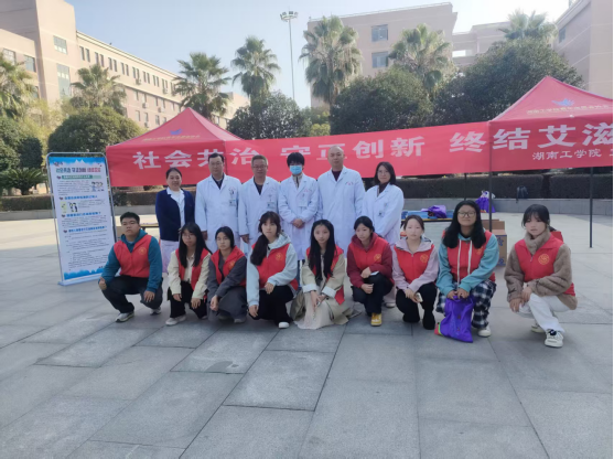 12月1日,beat365官网后勤基建处联合珠晖区人民医院在卓越广场开展了一场以“社会共治 守正创新 终结艾滋”为主题的“世界艾滋病日”宣传教育活动。