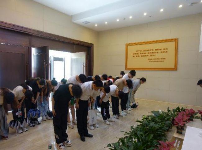 图2、3 全体党员同志向毛泽东雕像瞻仰和鞠躬