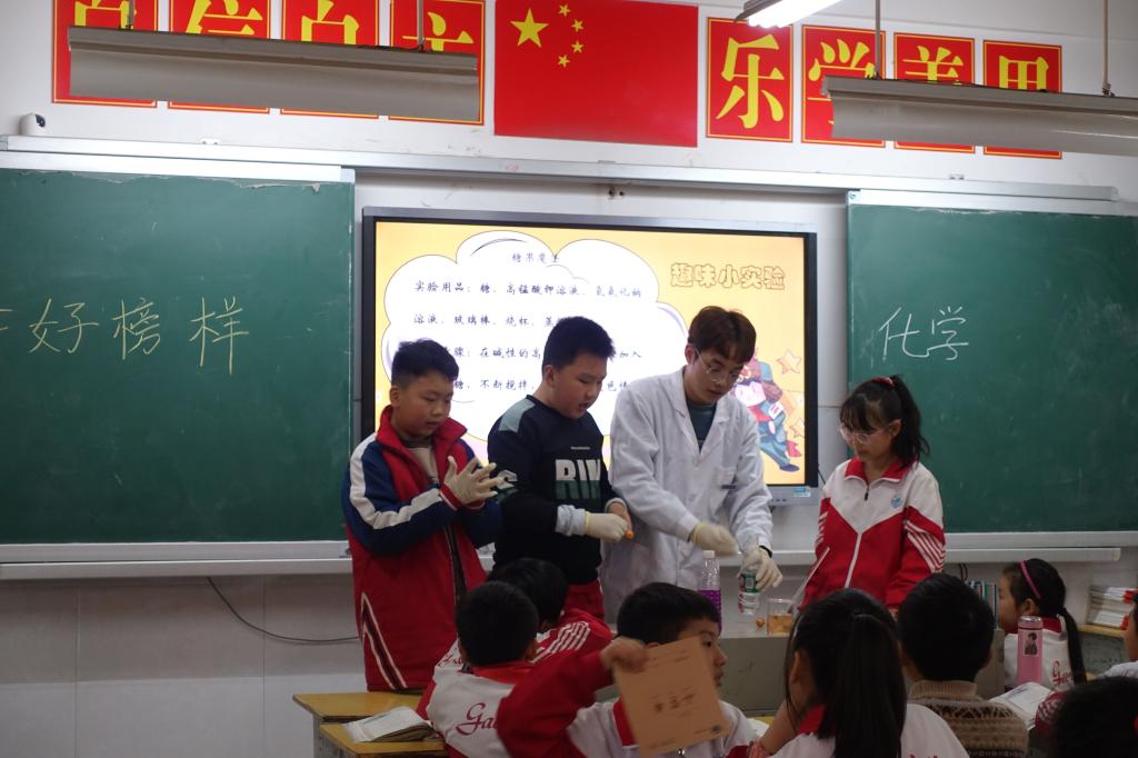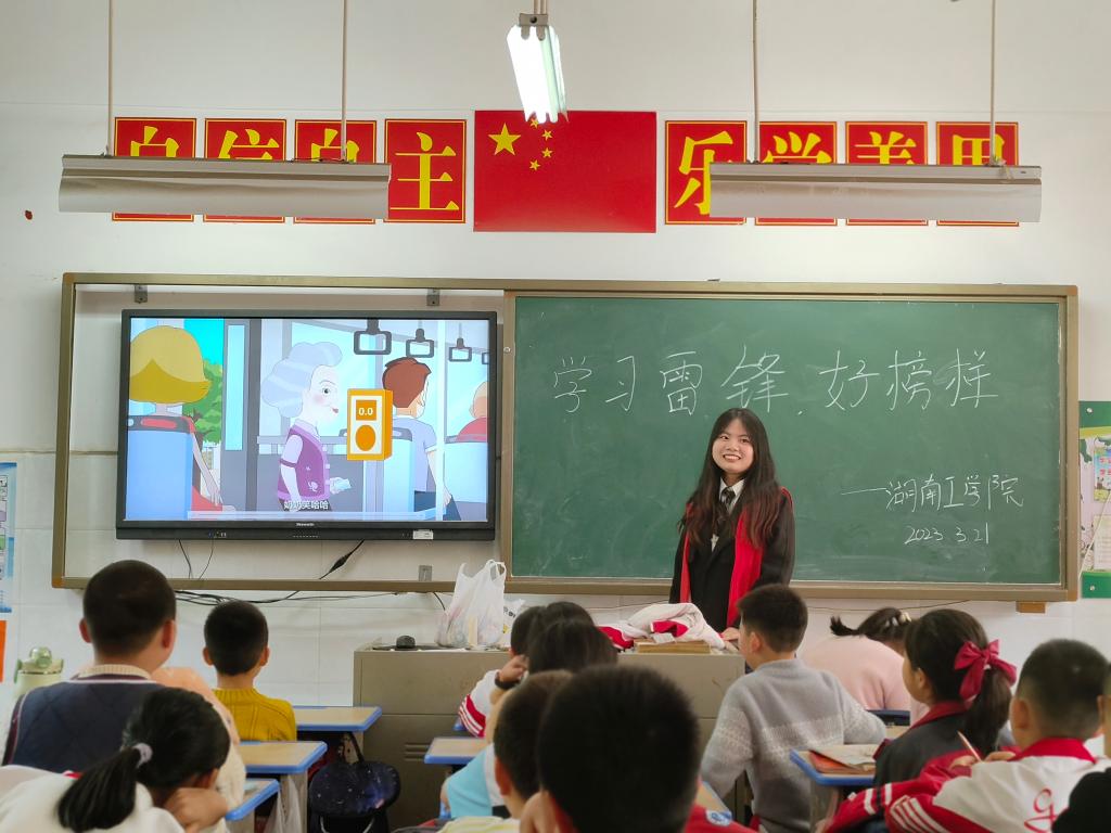 3月21日下午,化学与环境工程学院“湖小青”分队志愿者小组前往衡阳市雁峰区高兴小学欧水岭校区开展“学习雷锋精神,建设生态文明”志愿服务,我院35名“湖小青”为该校五年级7个班的小朋友们送上了一堂生动有趣的公益德育课。