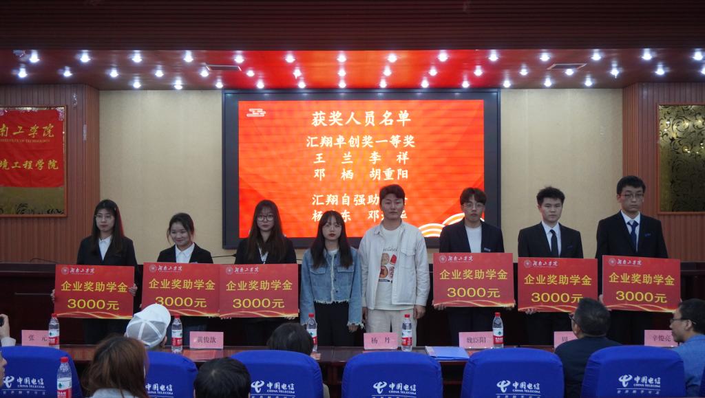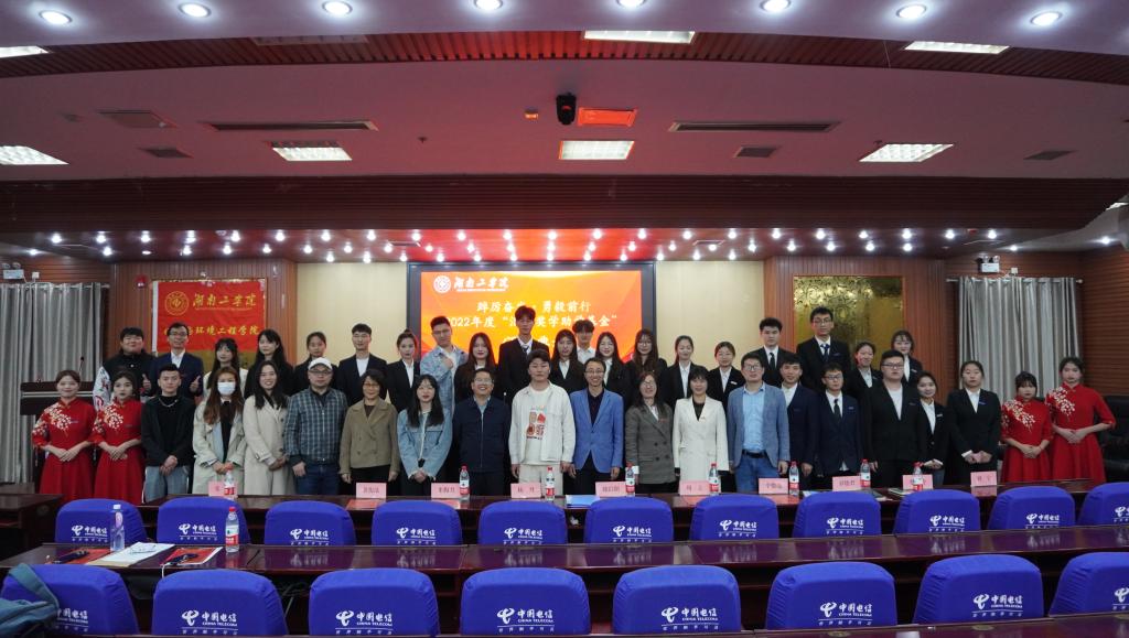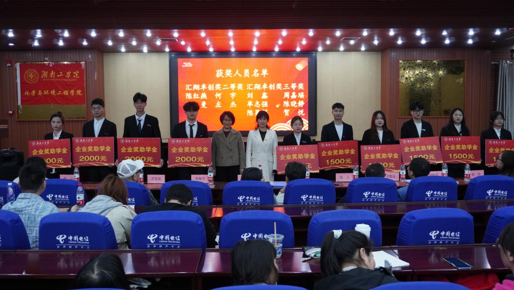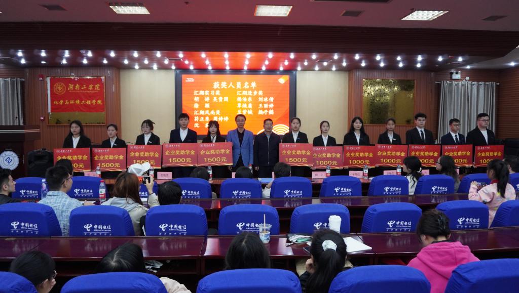 4月24日晚7点,化学与环境工程学院2022年度“汇翔奖学助学基金”颁奖典礼在蔡伦报告厅隆重举行。浙江汇翔新材料科技股份有限公司行政总经理魏臣阳、人事主管杨丹、beat365正版唯一官网必一基金会主任米梅月、校友联络中心副主任罗晓君、化学与环境工程学院党委书记周立、院长辛俊亮、副书记蔡玲、副院长黄俊歆、副院长刘宁及全体辅导员老师出席,“汇翔奖学助学基金”受奖助学生、学院学生代表参加。