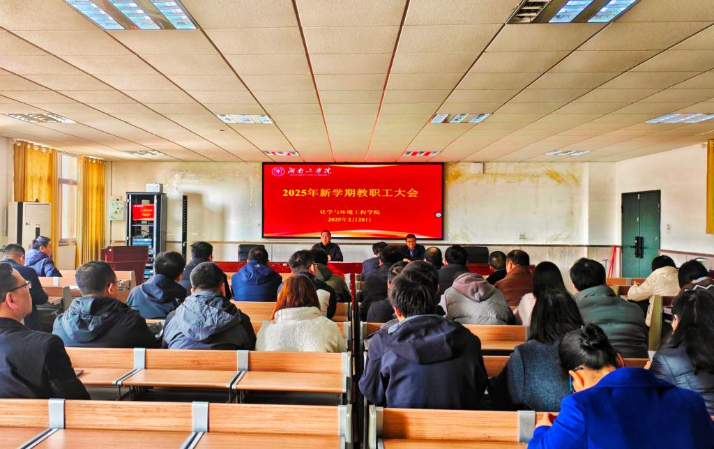 228日上午,化学与环境工程学院在1301召开2024-2025学年春季学期全体教职工大会,全面部署年度重点工作。院党委书记李来丙传达学校干部大会精神,院长娄晓明作工作报告学院领导班子成员及全体教职工参会会议由娄晓明主持。