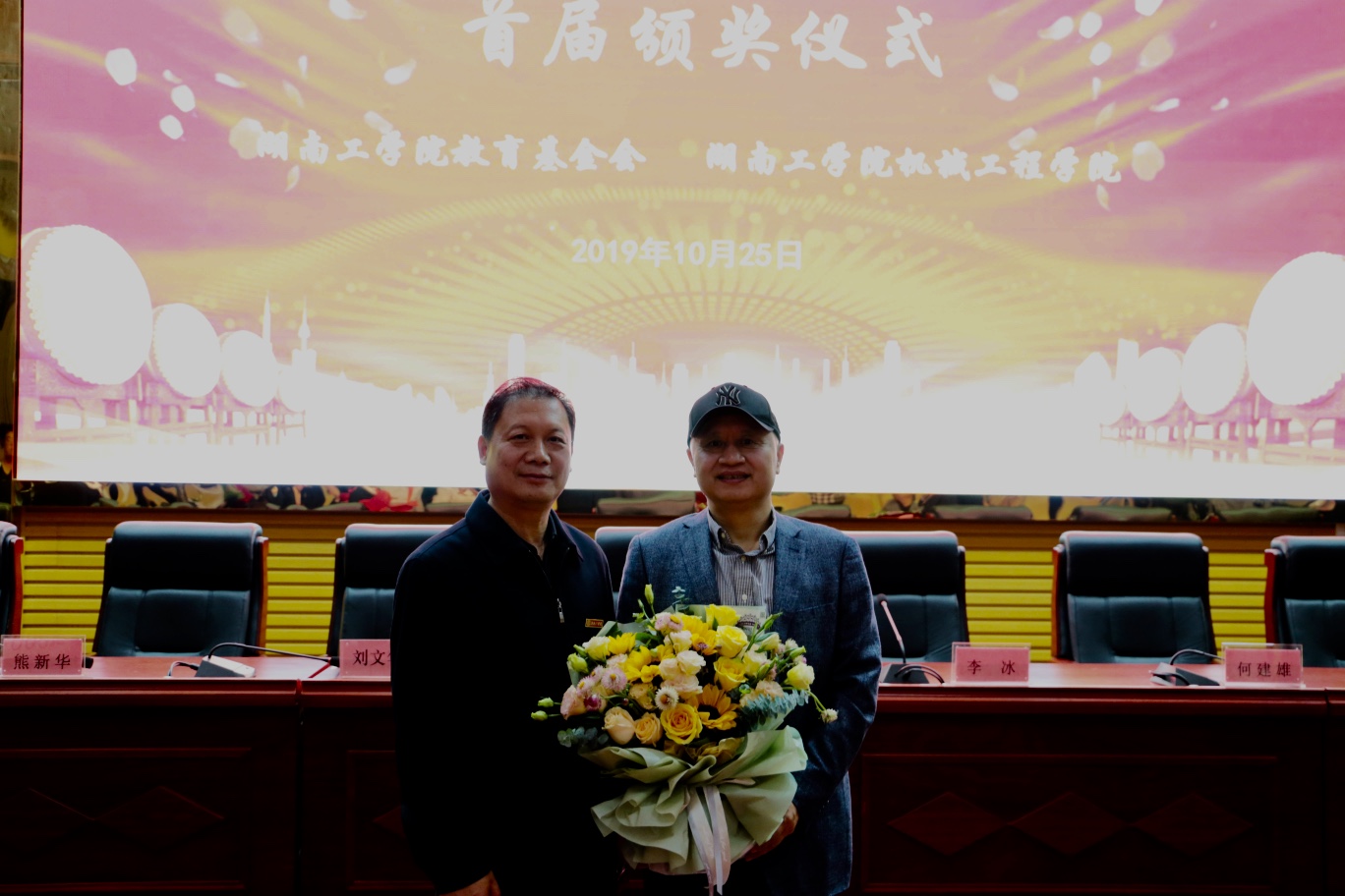机械工程学院院长刘吉兆教授致辞中向李冰校友表示了崇高的敬意和真挚的感谢。他希望全院学生以获奖同学为榜样,发奋读书,立志成才,实现李冰校友以及湖工寄予的厚望;希望全院老师以获奖老师为榜样,育人为本,进一步强化“奋斗的姿态,战士的担当”,以“工作干到感动自己,担当尽责不忘初心”的精气神,建设美丽新湖工,以优异的成绩向中华人民共和国建国70周年献礼。