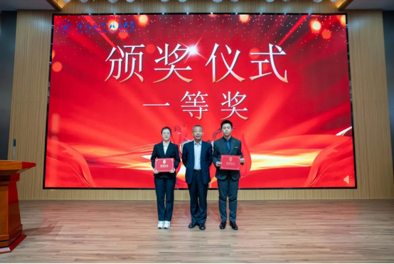 国际工程师学院主管日常工作副院长陈永庆为一等奖获奖同学颁奖
